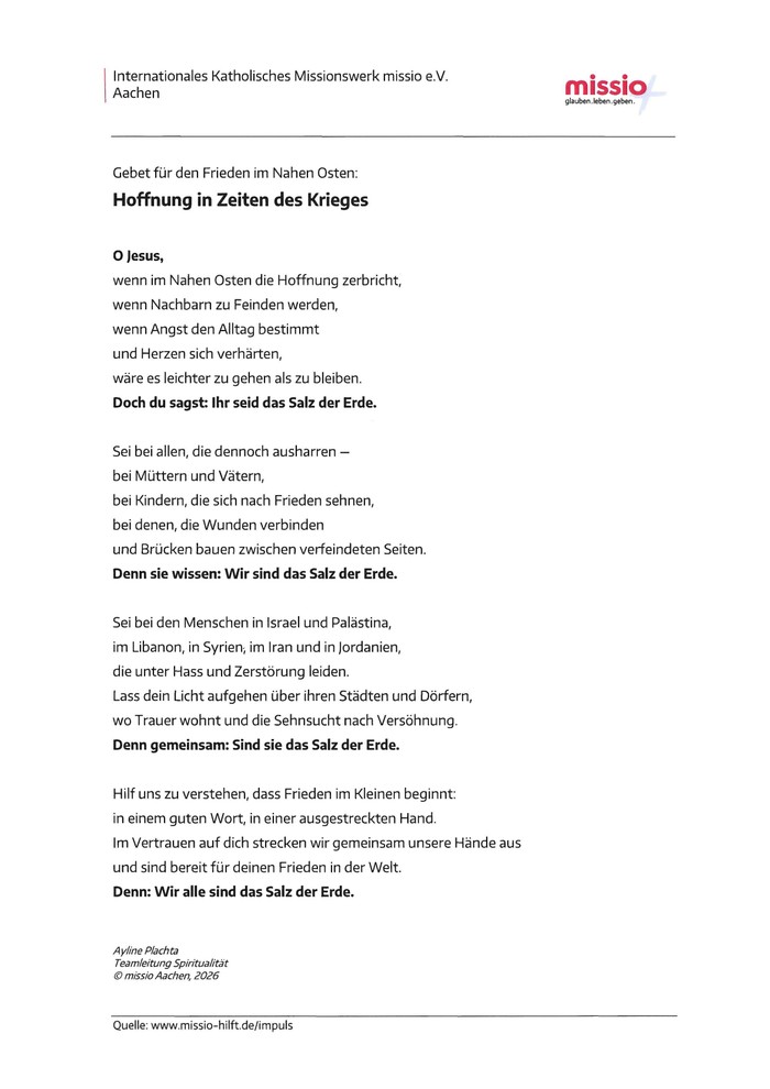 Friedensgebetszeiten in der Pfarrei