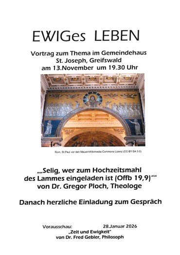 Gemeindeabend St. Joseph zu Ewigkeit - Vortrag von Dr Gregor Ploch "Selig, wer zum Hochzeitsmahl des Lammes eingeladen ist"