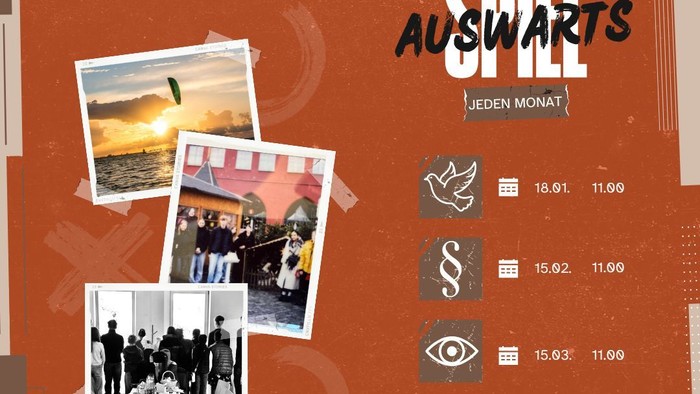 Wir treffen uns um 11 Uhr vor dem Pfarrer-Wachsmann-Haus (rechts an der Kirche vorbei) für "Spiel auswärts" und kommen gegen 12 Uhr zur Kirche zurück.