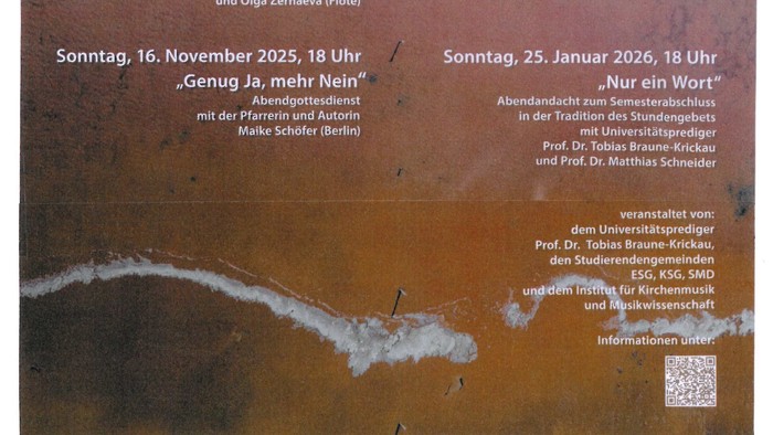 Abendandacht zum Semesterabschluss in der Tradition des Stundengebets mit Universitätsprediger Prof. Dr Tobias Braune-Krickau und Prof. Dr Matthias Schneider